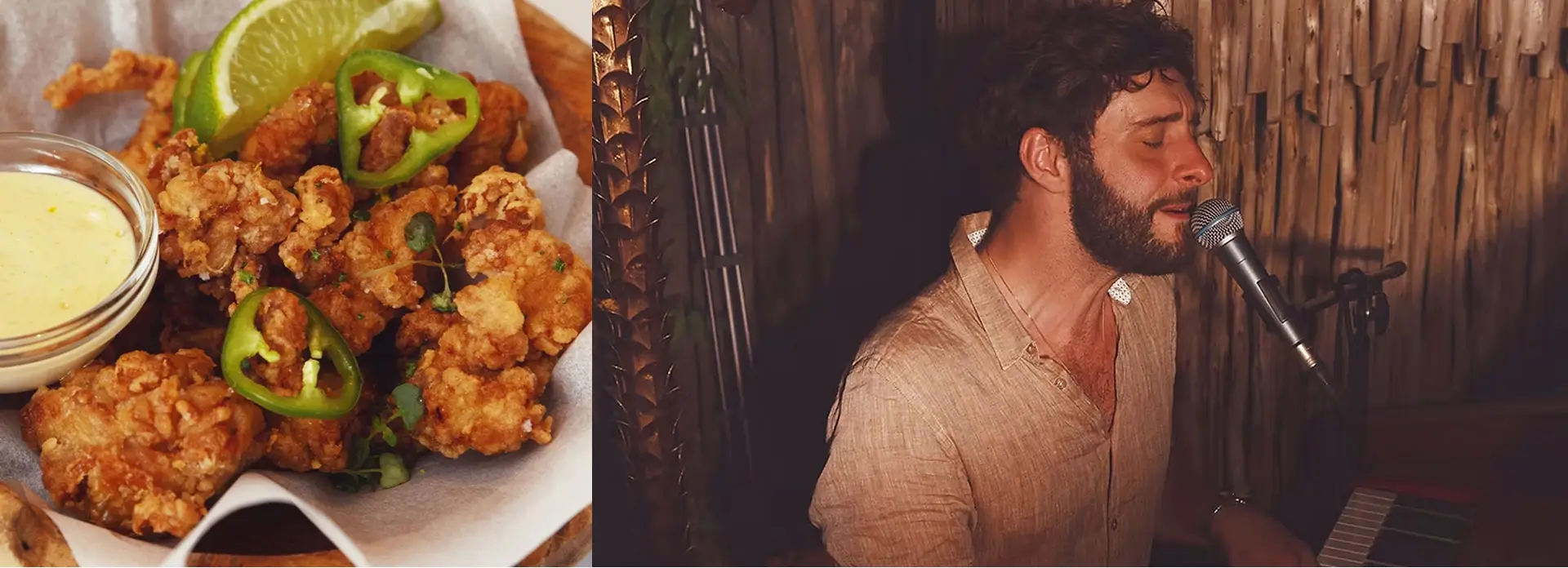 Jamy Nox, DJ résident, a élu domicile dans une cabane et distille ses sets pétillants. Il passe régulièrement le relais à Thomas Pradeau pour des sessions piano-voix. On se laisse emporter par ce mix musical vibrant et l’on se retrouve autour du piano à queue pour chanter à tue-tête des tubes pop revisités avec panache. La carte retour de voyage déroule une partition aussi singulière que gourmande. S’y mêlent délices d’ici, et surtout d’ailleurs. Une invitation à l’évasion jusque dans les assiettes.